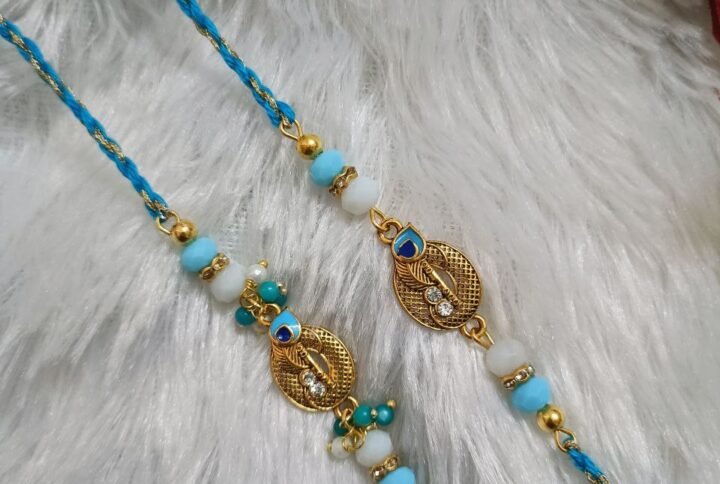 Elevate your Raksha Bandhan celebrations with this graceful pair of handcrafted Rakhis, thoughtfully designed to express love and tradition: